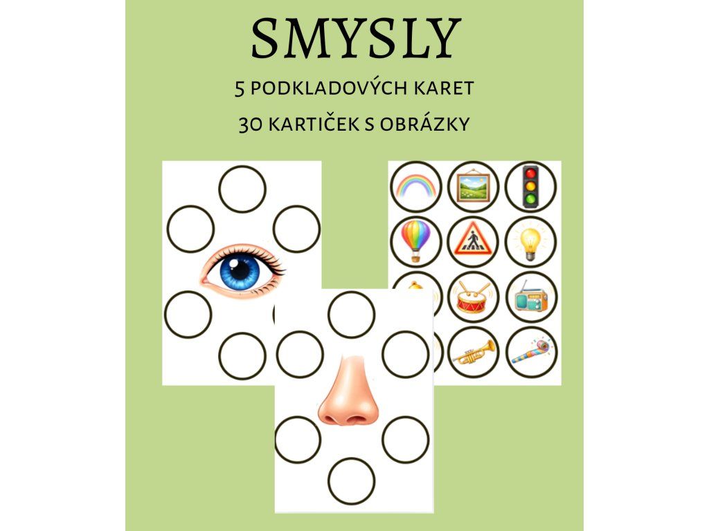5 podkladových karet (ke každému smyslu jedna)